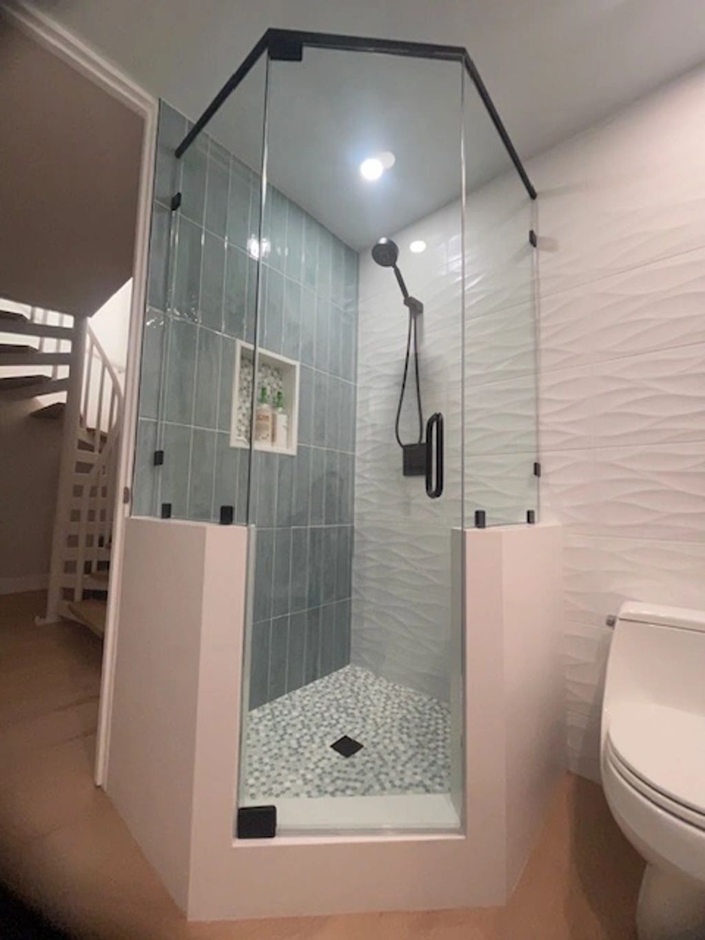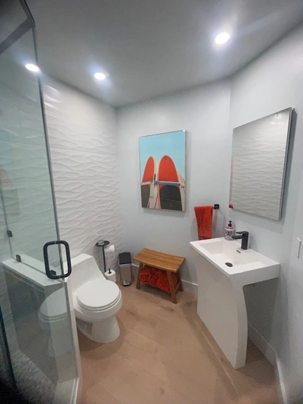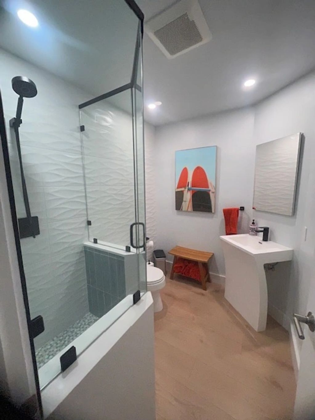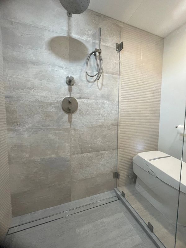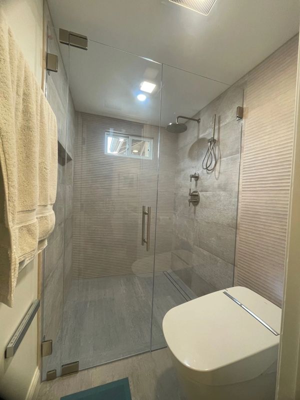 First floor guest bathroom full gut and remodel with spare room office conversion.